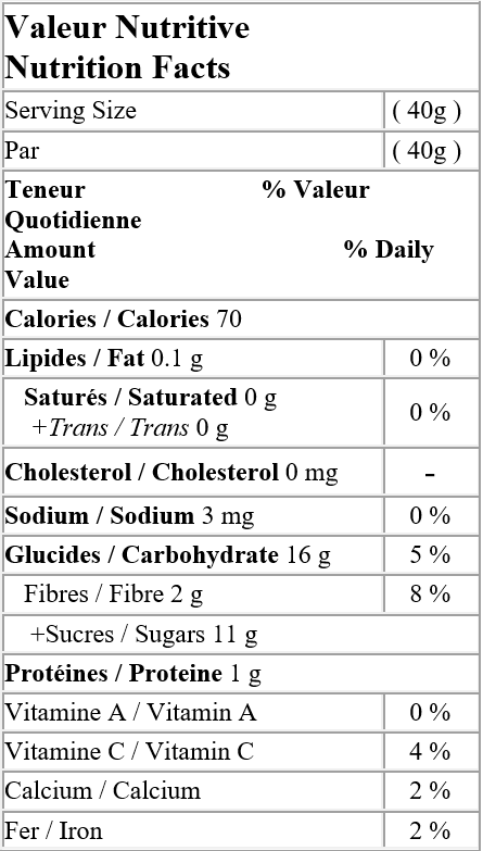 Ingredients : Black currants, sugar, fructose, sunflower oil (less than 1%).